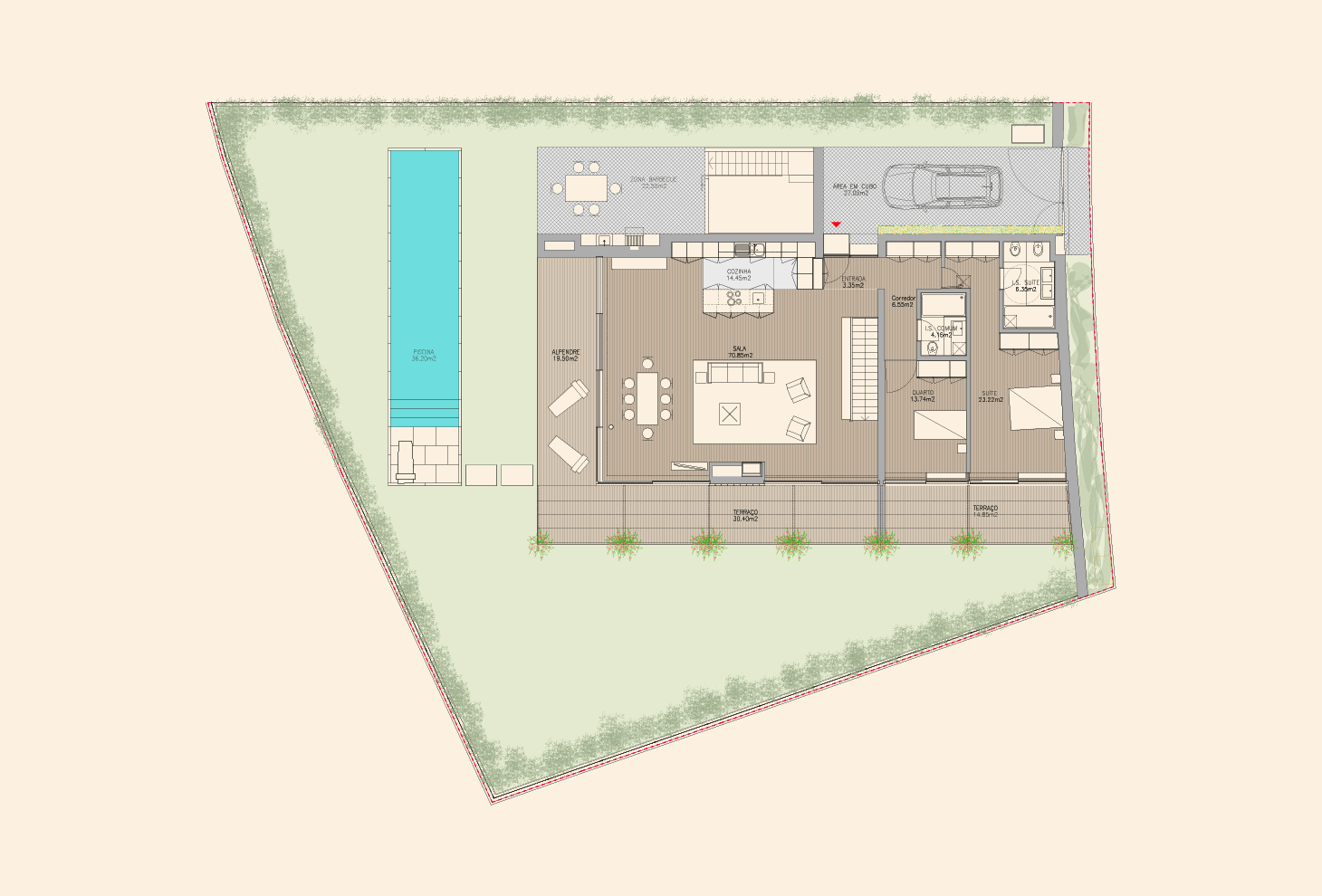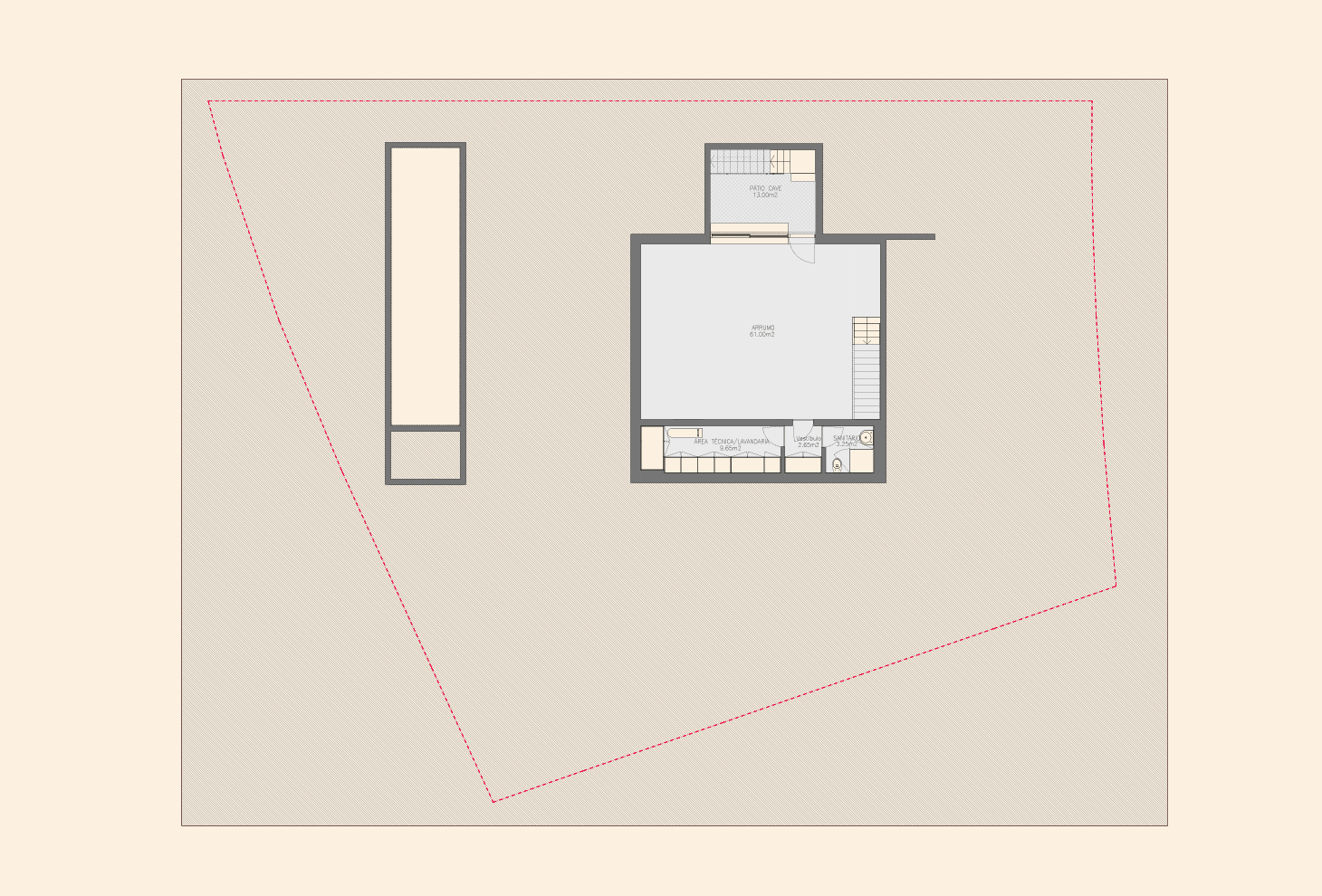 Floor Plan of a Single-storey Villa, with basement, set in a plot of 875 m²
