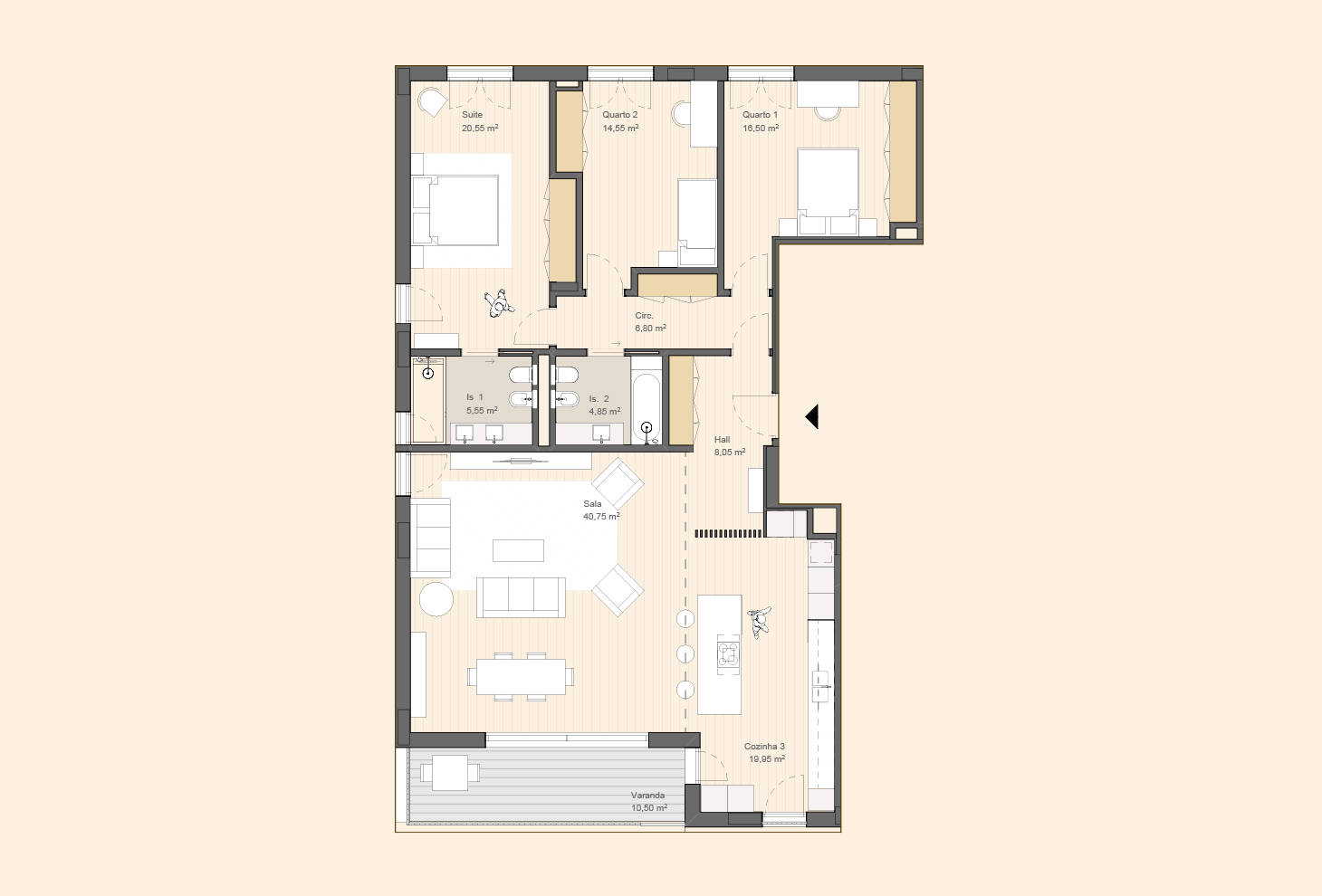 Apartment 3-bedroom Open